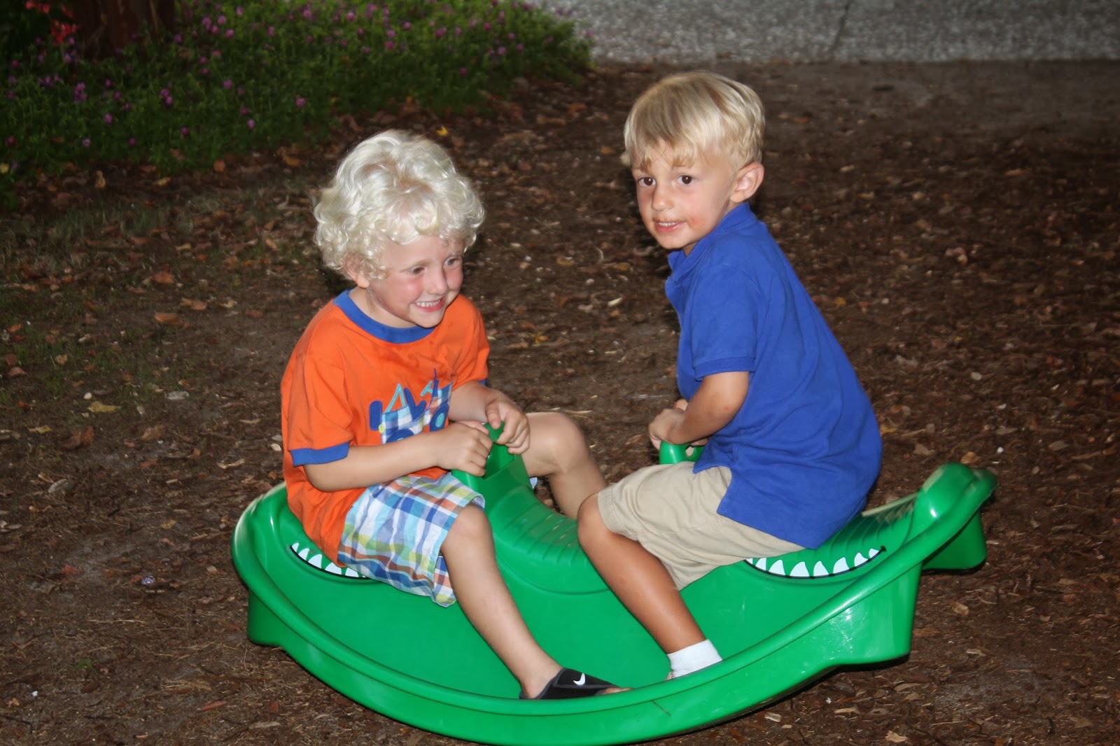 After a day at the beach, we headed to Freshfield's for dinner, music, and ice cream! First stop was the toy store, and Jackson picked out some foam swords. These 2 love to play fight!